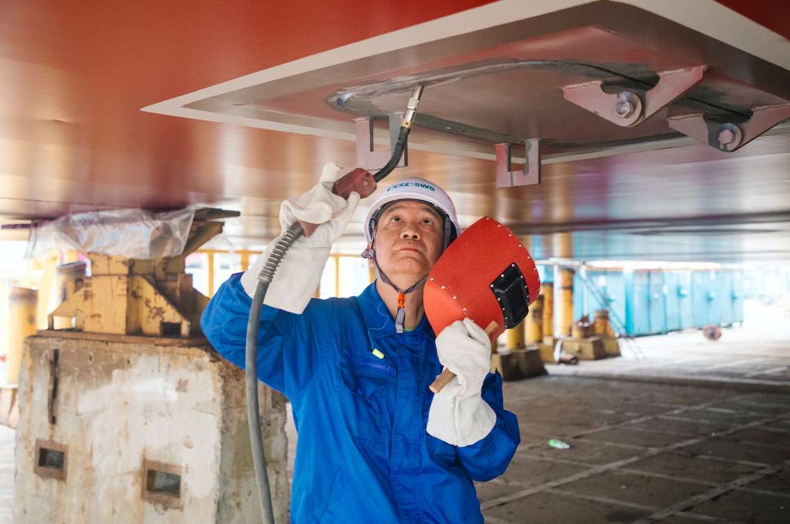 “虽然技能过关,但从事造船毕竟是新手。那会儿分秒必争地学习船只焊接技能,简直每晚看书到清晨。”李勇边干边学,仅用一个多星期就考出了我国、美国、法国船级社证书。在后来的海工6GR证书考试中,还带领10位工人一同经过。